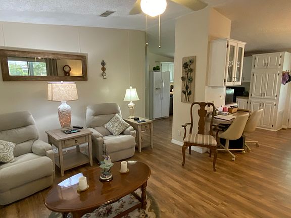 If you are looking for a smaller home in a 55+ community then do not miss seeing this one. It is home is located on a quiet street in The Gardens. The home is 1995 with 1008 square feet. It has two bedrooms and two bathrooms with a large kitchen, living and dining room. The kitchen was redone with new countertops, two pantries, and tile flooring. The dining room has a small desk area for you to work at. The roof and air conditioner were replaced in 2015. All the appliances in the kitchen are from 2017 except for the refrigerator which is from 2015. The has had a new vapor barrier, and tie downs in 2022. This home has an indoor laundry room right off the kitchen. The lanai is in front of the home and is a nice size with the vinyl windows being replaced in 2016. The cabinets in the kitchen were repainted and new hardware was added in 2016. The owner had the vapor barrier and tie downs redone in 2022. It is home is located on a quiet street in The Gardens. The Gardens is a 55+ community with a remodeled clubhouse with amenities Olympic size swimming pool, hot tub, outdoor kitchen, shuffleboard courts, horseshoes, ceramic area, library, card room, exercise room, billiard room, large industrial kitchen, craft room, and a large ballroom for all types of activities. The Gardens is a pet-friendly community allowing one dog or cat. The lot rent on this home is $966.00 plus pass-through tax of $52.38 which includes mowing, edging, trimming, and Spectrum cable (two hundred cable channels, 2 HD boxes, and internet). All listing information is deemed reliable but not guaranteed and should be independently verified through personal inspection by appropriate professionals. Integrity Mobile Home Sales cannot guarantee or warrant the accuracy of this information, measurements, or condition of any property. Measurements are approximate. Lot rent is subject to change.