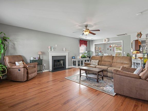 This Charming home is located in Popular Brickhope Greens. The home features an inviting front porch perfect for enjoying your favorite beverage. Upon entering, you have an open living area with a wood burning fireplace that seller currently enjoys with electric logs that can remain with the home. The formal dining room is roomy and features chair rail and beautiful moulding. Perfect for entertaining guests! The eat in kitchen is large with a pantry and features recessed lighting as well as undermount cabinet lighting. The cabinets are plentiful and the seller recently replaced the microwave. The double door refrigerator and front loading washer and dryer will convey with the home. Upstairs you have four bedrooms. One of which is an over sized Frog with a closet. This room can be used as a media room, office or guest bedroom. You decide! The Owner's suite features a good size walk-in closet, an ensuite bathroom with a double vanity, a stand up shower and a separate garden tub for relaxing. The sellers also installed a new HVAC system in 2018 and a new hot water heater that is less than two years old. The Backyard features a screened porch, privacy fence and a storage shed that will remain. The community has a playground, basketball court, dog park and a gazebo to enjoy. Perfectly located, this home is close to Goose Creek and Hanahan shopping and dining, the Naval Weapons station and has quick I-26 access to Charleston. Put this one on your list today!