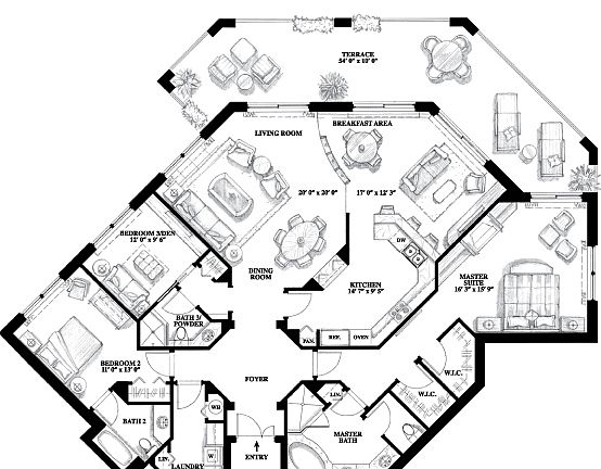 This brand new 3rd floor residence at The Landmark offers gorgeous travertine flooring, crown molding, 3 bedrooms, 3 bathrooms, and over 2,300 square feet of luxury living. The expansive balcony wraps around the unit, provides an extra 500 square feet of outdoor living space and can be accessed from various floor-to-ceiling sliding glass doors in the living room to the master suite.