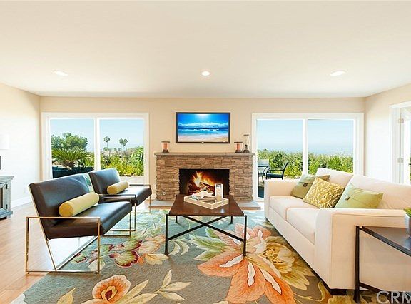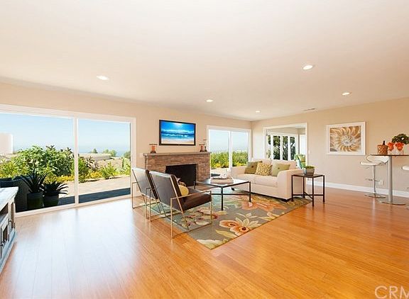 Amazing single story view home on top the hill with panoramic ocean views of Dana Point Harbor, Catalina Island & San Clemente city lights! This home is situated on a very private cul de sac lot with room for a pool. Four great size bedrooms & three large baths this home has all the bells & whistles, a chef's gourmet kitchen, with quartz counters, high end stainless steel appliances, & beautiful shaker cabinets. Front patio for morning breakfast & evening entertaining. Views from almost every room! Extensive gorgeous bamboo flooring with a large wood burning Fireplace sets the tone the moment you walk thru the solid wood door. Dual vanities in all baths with highly upgraded frame less glass shower enclosures and imported porcelain tile. Indoor laundry room with sink. Designer carpet in all four bedrooms. Dual pane windows throughout. This beautiful turn-key home is completely remodeled and rewired with upgraded 200 Amp electric panel . New 5-ton heating & AC unit. A 50 gallon H20 with recirculation system, new sewer lines & completely re-piped. Pre-wire for high speed internet. Concrete pavers with matching stack in front and back. Beautiful drought resistant free plants with a drip system irrigation. A rare find with a major remodel!