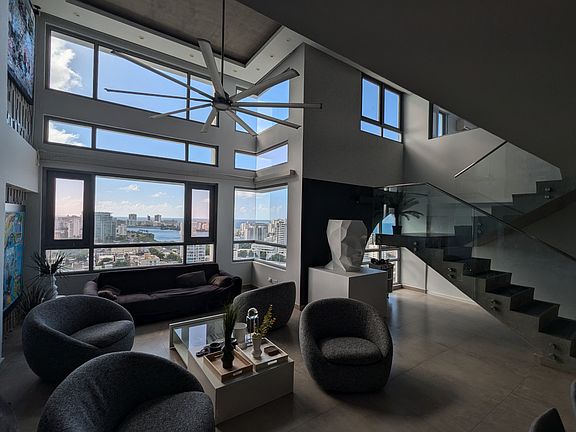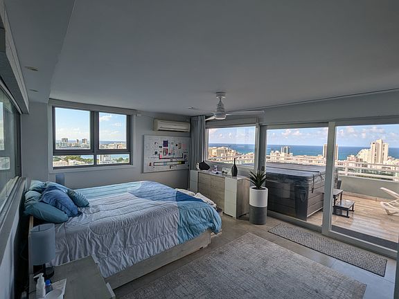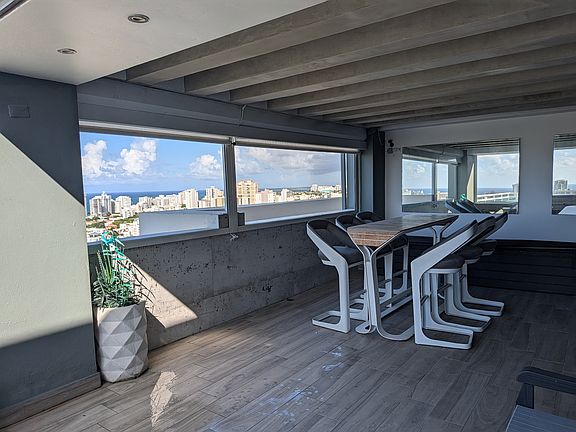 Discover the epitome high rise living in this breathtaking 2-level penthouse, located in the heart of Santurce's vibrant arts district. With 2,400 sq. ft. of updated interiors, this fully furnished home features 3 spacious bedrooms and 3 full baths, including 2 rooms with ensuite bathrooms and walk in closets. Recently updated with high-end appliances and elegant finishes. The 1,100 sq. ft. private terrace is an entertainer's paradise, featuring a full outdoor kitchen with stainless steel appliances, an ice maker, and a wrap around bar/dining area. Unwind in the private Jacuzzi or relax in the covered TV and entertainment area, all while enjoying panoramic ocean and city views. The open 2-story loft-style interior is flooded with natural light, creating a warm and inviting atmosphere. This unit comes with a private EV charger installed in the two designated parking spaces, making it ideal for electric vehicle owners. Nestled in the Metro Plaza building, residents benefit from 24/7 security, concierge services, a full backup generator, 2 gyms, residents only garage, a guest parking garage and a dog park. 2 Restaurants in building. The location is exceptionally walkable, nestled in the desirable Santurce arts district and just steps away from the beautiful Condado Beach. Live in one of San Juan's most sought-after neighborhoods and enjoy the perfect blend of indoor and outdoor luxury. Don't miss this rare opportunity! **Buyers Agent Commission Offered High speed fiber cable, HOA, Water,Sewer, Trash is included. Tenant only pays for electricity. 12 Month Lease. 2 Designated Parking Spaces in Garage with EV Charger Include. Fully Furnished