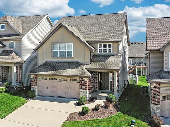 Wonderful newer 2 story detached villa minutes away from 94/364! Lovely 3bed/2.5 bath and RARE with 2 car attached garage with plenty of yard space, brick/stone and nearly 2200 sq. feet! Inside is a grand 2 story entry foyer, wood veneer floors, 9 foot ceilings, gourmet kitchen w/ quartz, stainless & custom cabinets. There's also separate dining, breakfast bar and huge great room with direct vent fireplace. Perfect for entertaining! Also main level laundry and a great view of the back patio with fenced in yard! Upper level has the perfect loft area for reading, home office or playroom & the large master bedroom suite/master bath suite has separate shower/tub/walk-in closet. There's also two generously sized spare bedrooms with a Jack n Jill! Unfinished basement has rough-in plumbing and egress that's ready to finish. Location: Detached