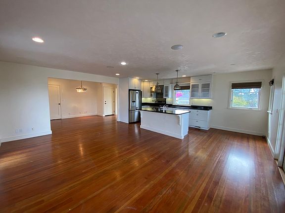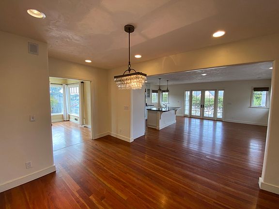 Classic remodeled 3 bedroom, 2.5 bathroom home with spectacular bay and city light views! Unbeatable location close to schools (2 blocks walk to Robert Down Elementary), 2 blocks to downtown PG, and 4 blocks to the recreation trail. This home has approximately 2,450 square feet of living area. The first floor has 2 bedrooms, a full bath, a guest powder room, kitchen, separate laundry room, a family room, and a living room with a wood-burning fireplace and great bay views. There is also a breakfast nook and breakfast bar in the kitchen. The kitchen features granite countertops, stainless-steel appliances including a refrigerator, a gas range with self-cleaning double oven, a dishwasher, and a trash compactor. The separate laundry room has additional storage, a utility sink, a laundry chute from the second floor, and a full-size washer and gas dryer. The second floor is a master bedroom suite with a double-sided fireplace in the bedroom and master bath and a separate 250 sq ft room (could serve as an office) with a balcony enjoying sweeping views of the Monterey Bay! Most of the home features beautiful wood floors. Stairs lead from the first floor of the house to the basement which includes a one-car garage suitable for a small car, a utility room for extra storage, and a huge 400+ sq ft basement-style room that has the potential for many uses or just as a huge storage area. (None of the basement is included in the house's livable square footage.) The home has central heating. Rent includes basic gardening and sewer. No smoke. One small, non-destructive pet with excellent references. Available/Showings September 9th. Rent includes basic gardening and sewer. Tenant responsible for other utilities.