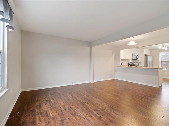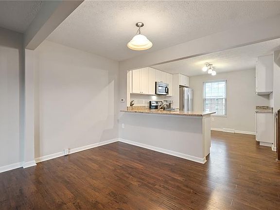 This adorable townhome has been meticulously maintained and is move-in ready! The main living level features a spacious open floor plan, beautiful hardwood flooring, and walk-out access to the deck overlooking the quiet back lawn. The kitchen is a delight with beautiful white cabinetry with soft close hinges, granite countertops, stainless steel appliances, plenty of cabinet and counter space, and a peninsula with counter seating! Two nice sized bedrooms with large closets and ceiling fans are found on the second floor, as well as the beautifully updated full bath with large vanity and tile shower surround. You will also love the large clean basement with plenty of room for a multitude of purposes! This fantastic community offers a gorgeous park, playground, basketball courts, tennis courts and is located just minutes from main shopping centers and roadways.