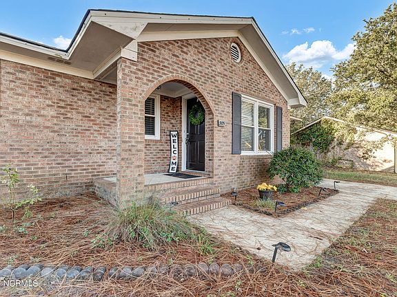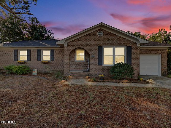 This beautiful ALL BRICK ranch home features 3 bedrooms and one studio, a gorgeous arch over the front door, custom shiplap on the ceiling and walls, an oversized attached garage, and a HUGE fully fenced in back yard. Tons of upgrades, LVP flooring throughout, NO CARPET, new lighting, upgraded bathrooms, and a new Trane HVAC heat pump!! The living and dining area is spacious and flows right into an open kitchen with matching stainless steel appliances. All appliances convey! Features a large owner's suite, two secondary bedrooms, and an extra 4th room that would be perfect for an office or guest bedroom!! This home is a must see and it's close to schools, shopping, restaurants, and medical facilities. NO HOA!!! Bring your boats and campers! One mile from River Road Park boat ramp, approximately 5 miles from Carolina Beach, and walking distance to the neigborhood park Monterey Heights Park which features a multi-purpose field, walking trail, picnic shelter, and playground. Make this house your home, schedule a showing today!