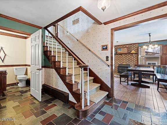 Custom built 3-bedroom brick two-story Dutch Colonial in-town close to everything. Formal entry, kitchen features include new tile flooring, Wood-Mode cabinetry, Corian countertops, island, wall oven, gas countertop range, track lighting, island, and a peninsula with bar sink. The dining room features a brick hearth with Alaskan wood stove, living room with mountain stone fireplace, gas insert, wood flooring, first floor laundry. Primary bedroom suite with brick hearth and wood stove, a 2nd floor sitting area, central vacuum, central air condition on the second level, interior wood window shutters, and economical gas hot water heat. Integral garage with entry from alley. 16 'x 18 sunroom leads to the deck and backyard. 12' x 24' shed with electric and gas heat. Call Scott 570-412-6121.