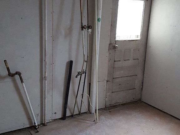So many possibilities! Seller will consider owner financing. Seller planned on converting to a 2 unit by using 1st floor living room as bedroom and bath inthe rear where a previous bath was, us dining room as living room rear room as kitchen, accessing bedroom/bath under the stairs, closing off from main staircase for entrance to upstairs unit where the kitchen was to be in the rear, large living room, 2 bedroom and 1 bath. The laundry was to be shared by both units. 1st floor has enclosed porch as well. OR use as a large 4 bedroom single family home. Most of home has new drywall hung but the finishing work needs completed. No heat system as seller was going to use electric baseboard for each unit.
