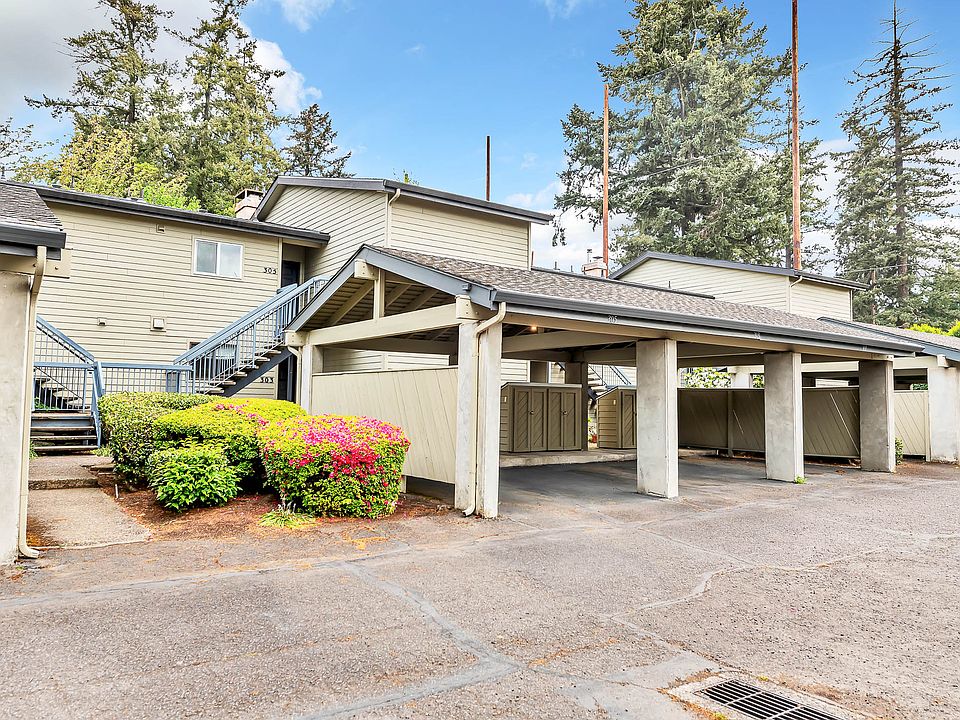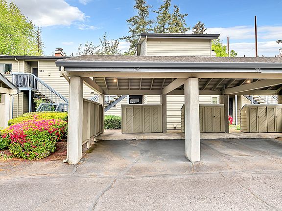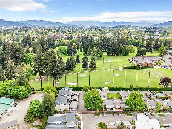 PRIME LOCATION! Executive condo located in the highly desirable Country Club Gardens adjacent to the prestigious Eugene Country Club is premiere luxury living in one of Eugene's most desired areas. 5-minute walk to Oakway Center and quick 5-minute drive to Valley River, Gateway Mall and Downtown Eugene. Minutes to UO Campus, Hayward Field & Autzen Stadium. Gorgeous 2 bedroom upper unit offering a spacious light and bright open floor plan. A full remodel completed in 2024 reveal vinyl plank flooring, soaring ceilings, new paint throughout, rustic stained wood beams, shiplap accents, and matte black embellishments. Enjoy sleek newly installed Mitsubishi Designer Series Ductless Units for year-round heating and cooling comfort. The stunning upgraded kitchen boasts newly refaced wood cabinets, quartz counters, stainless steel LG appliances and wood-planked ceilings that extend into the dining and living areas. Panoramic sliders in both living and primary bedroom lead to a large private balcony. Bedrooms are highlighted with coordinated accent walls, wood beam centerpieces and tall vaulted ceilings. A newly updated full bath with coordinated matte black fixtures, shiplap wall enhancement and a subway tiled shower/tub enclosure extending into a large bonus area with generous closets, extra cabinetry, and a double mirrored quartz top vanity. New LG ThinQ WashTower Bluetooth Washer and Dryer and extra closet space tucked neatly behind stained barn doors in the convenient indoor laundry. A large attic provides extra storage. Designated carport with lockable storage and plenty of visitor parking available directly in front of unit. Water, sewer, and trash are included. Unit does not come furnished*