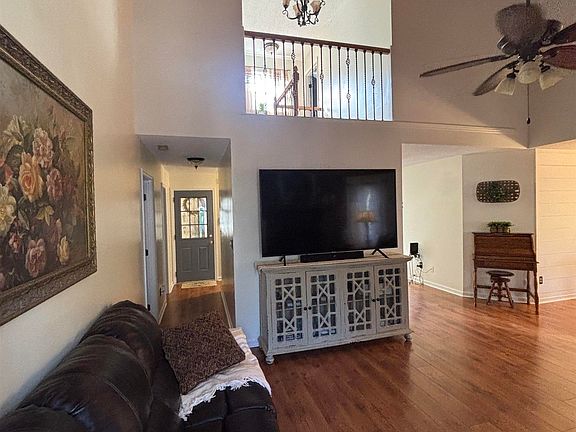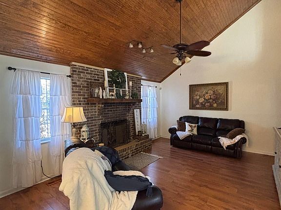 Gas log fireplaceEat in kitchenVaulted ceiling