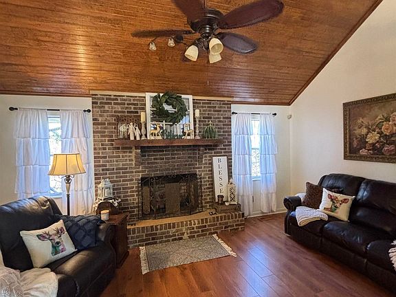 Charming 3 bed 2.5 bath storybook home with full unfinished basement, nestled on 6 partially fenced beautiful acres. Step inside to a spacious living room featuring a vaulted ceiling and gas log fireplace. The home offers both an eat in kitchen and seperate formal dining room perfect for entertaining and big families. Primary bedroom and bath is located on the main level for convenience. Upstairs you will find 2 bedrooms, a full bath, and three additional rooms that can be used for an office, storage, or play rooms! 6 acres is complete with a barn and a mix of woods and open land. A second septic tank is in place for an additional shop or expansion. A rare find in a wonderful area!