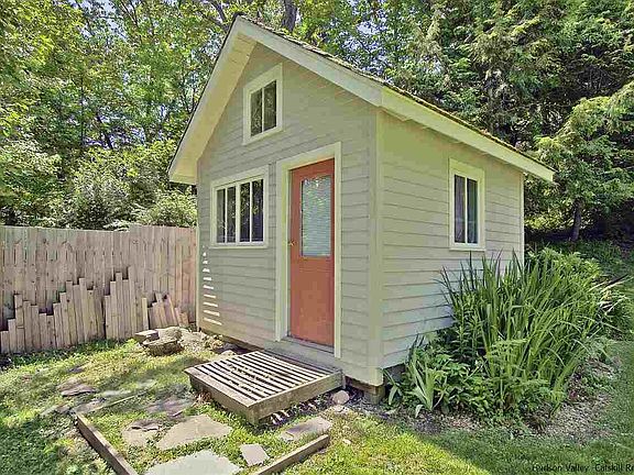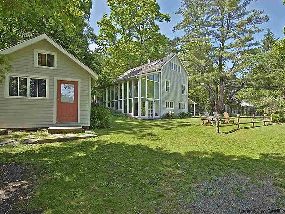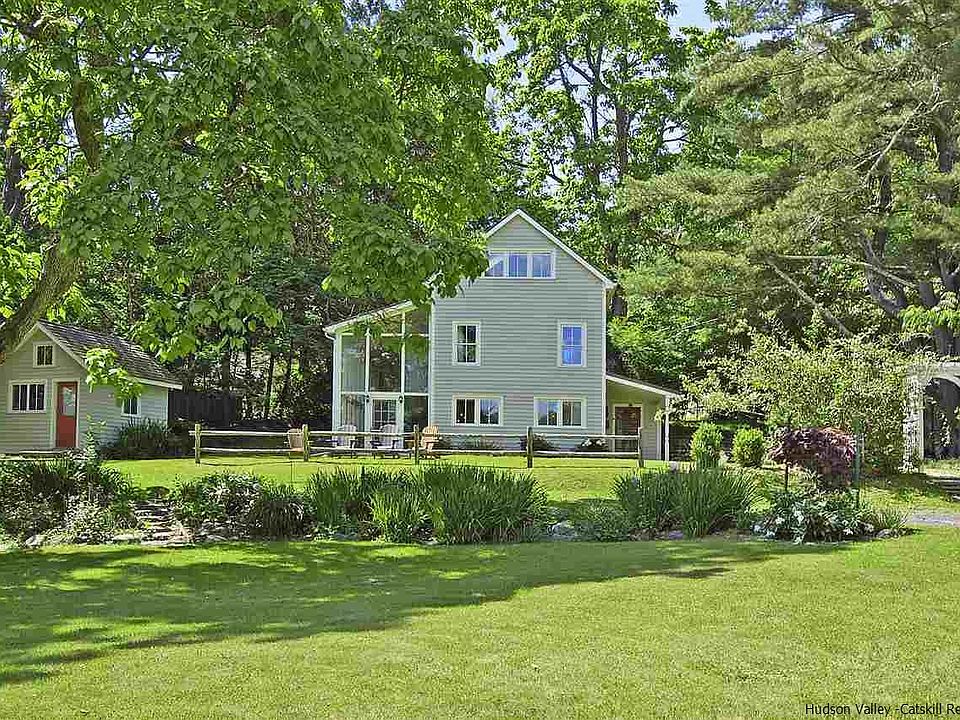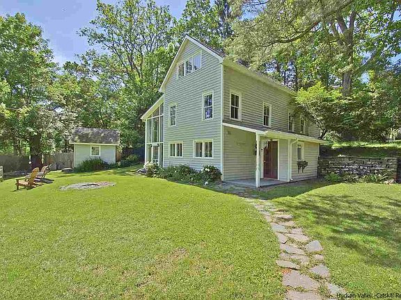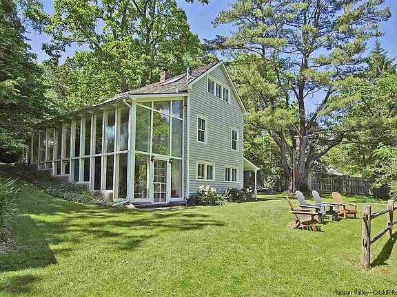 CHARMING 1800'S FARMHOUSE WITH EXCEPTIONAL GLASS ADDITION LOCATED IN THE HISTORIC HAMLET OF KRIPPLEBUSH. Hidden behind a privacy fence is this truly delightful historic property. Enter into a high ceilinged Great Room with bluestone floors and windows overlooking the sweeping lawns and gardens. Much attention has been paid to detail and craftsmanship. Major double height glass addition, also with bluestone floors is perfect for an artists studio, conservatory, greenhouse or yoga studio. The second floor has a cozy beamed ceilinged library and two generous bedrooms. The surprise third floor has an expansive studio and office with exceptional views across the property. The almost 3 acre property has much to offer. Expertly laid bluestone retaining wall with steps leads to lovely sitting area. An additional separate studio building with electric. Masterful Gardens. Stone Walls. Pond site. All the desired charm, history and beauty of this property is sensitively tucked away in the Historic Hamlet of Kripplebush.
