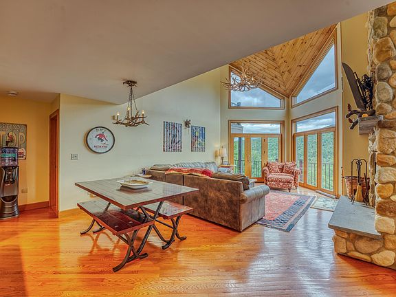 Situated on the mountainside, this three-level Crawford Ridge unit offers an ideal combination of style and function in the heart of Bretton Woods. The main level features a cozy living room with cathedral ceilings and a wood-burning fireplace, a well-appointed kitchen with granite countertops, dining area, bedroom with private full bath, generous mudroom with ample gear storage and seating, half bath and deck access from both the living room and bedroom. The second level includes an open walkway overlooking the main living area, leading to two additional bedrooms. One bedroom offers a private deck with direct access to the common full bath, while the other highlights the home’s architectural design. The lower level provides a second living area with a gas fireplace, two additional bedrooms, a common full bath, and direct access to the deck and hot tub. This property offers abundant outdoor space and stunning views of the Presidential Range, with Mount Washington prominently in view. Conveniently located just steps from the trails, this Crawford Ridge residence presents an excellent opportunity for mountain living and would make the perfect home away from home.