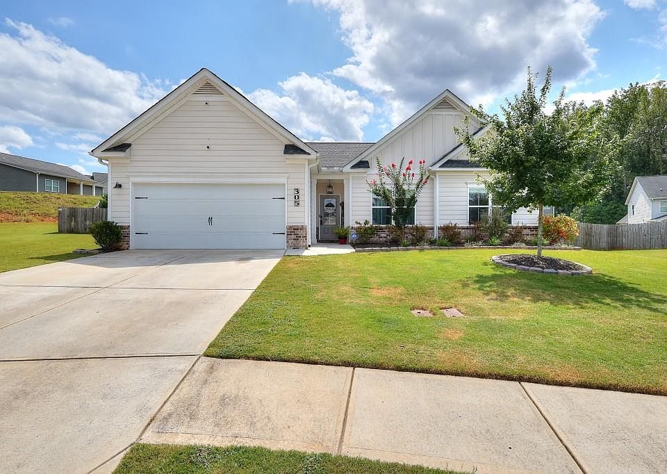 Welcome home! This stunning 4-bedroom ranch offers an open layout perfect for everyday living and entertaining. The spacious family room flows seamlessly into the bright white kitchen, complete with a large island and pantry. Beautiful laminate veneer flooring runs throughout the home, enhancing its modern feel. From the family room, step out to the covered patio with easy access to the private backyard, ideal for gatherings or quiet evenings outdoors. The oversized master suite features a walk-in closet, and a luxurious bath with a soaking tub, separate shower, and private water closet. Three additional bedrooms provide generous closet space, and share a full guest bathroom. Nestled on a cul-de-sac lot with a privacy-fenced backyard, this home is just minutes from downtown Monroe, where you'll enjoy dining, shopping, and community activities.