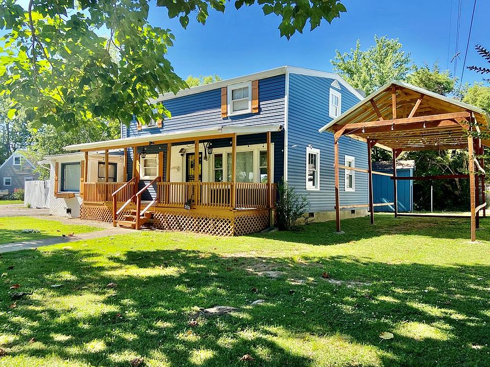 TWO STORY 4 BEDROOMS 2 1/2 BATHS, MASTER BEDROOM LOCATED ON MAIN FLOOR, TWO FULL REMODLED BATHROOMS, ONE WITH A LARGE WALK IN SHOWER, NEW GRANITE COUNTERTOPS, NEW DOUBLE STAINLESS STEEL SINK AND FLOORING IN KITHCEN, PATIO LOCATED NEXT TO ATTACHED CARPORT, DETACHED PONTOON BOAT SIZE CARPORT, NEW ROOF, NEW SIDING, NEW SITTING PORCH TO ENJOY SUMMER NIGHTS AND BEAUTIFUL MORNINGS!