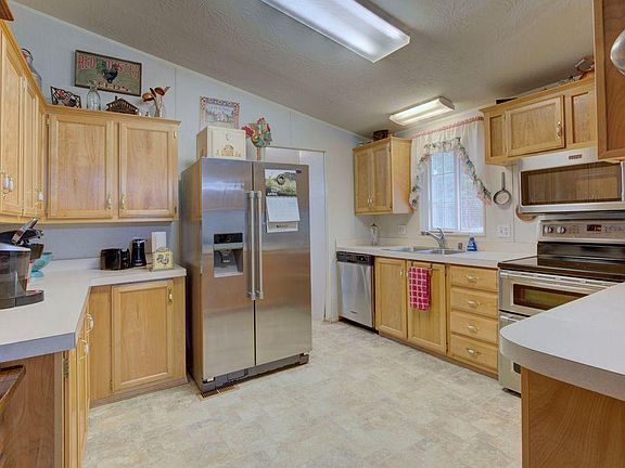 Tucked away in a beautiful country setting is this 3 bedroom 2 bathroom 1580 sqft lovely manufactured home.A covered front porch welcomes you in to a spacious & desirable split bedroom floor plan.A cheery living room with vaulted ceiling & large picture windows bringing the outside in. A light & bright kitchen with plenty of cabinets & a breakfast bar!Laundry room off from kitchen & door to back yard.A wonderful family room to spread out in.Two guest bedrooms & a guest bathroom off from family room.Master bedroom has vaulted ceiling with fan, walk in closet & bathroom that leads to laundry.Back yard has decking & fir pit for outside relaxing & entertaining!Attached 2 car carport, detached 1 car garage/work shop area & work sink.Very large metal shop with two roll up doors in front and 1 roll up door on the side, shop has large turn around.Two R.V. hook ups, one with power & water the other power, water & electricity.2.50ac. level gated & fenced. schedule today!