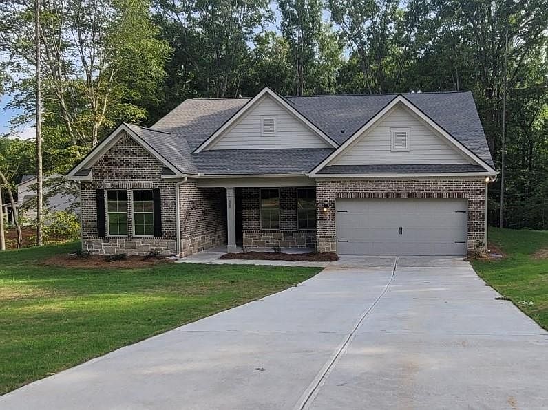 The Rosewood Plan built by My Home Communities is Conveniently located in Ellenwood, only 22 miles from Hartsfield Jackson International Airport, and 22 miles to Downtown Atlanta. This Gem has an open floorplan that features a Gourmet Kitchen which boasts an oversized island overlooking the family room and breakfast area. Stainless Steel appliances, Granite Countertops and Tile Backsplash and a Cozy electric fireplace in the Living Room. Spacious Primary Bedroom with Trey Ceiling and plenty of light. Main bathroom has Granite Dual vanities, an OVERSIZED 5' tiled shower and a HUGE Walk-In Closet. Enjoy some time outdoors on the Covered Patio overlooking private backyard, complete with Ceiling Fan. Tuxedo Estates is also located in Henry County School District which is Home of the Top College Success Award Winners. Special Incentives with Seller's preferred lender which can be used toward closing cost. This home is READY NOW for a Quick Move-In.