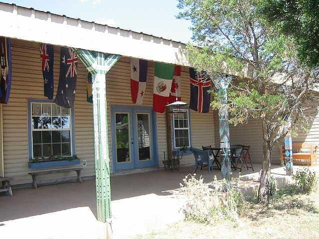 Unique property and a great value for the price - 5000(+/-)SqFt of finished space under an 8000 SqFt metal roof, all on slab. Includes a 3 bedroom, 2 bath residence; 2 bedroom, 1 bath wheelchair accessable aparttment with separate entrance; workshop and garage. The large, mulit-purpose room in this home is suitable for a home business, home theater, home gym, art/music/yua/pottery/craft studio ... From the deep and long covered porch, you have a distant view of the Texas Hill Country. The property has raised garden beds shaded by a sunscreen structure. This 10.48 acres is perfect for horses. The home is serviced by a 6000 gal. rainwater collection system and a well. You must see this one in person to fully appreciate it's unique style. Call today for your personal showing!