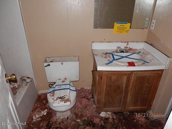 Home was damaged from hurricane and is in need of complete overhaul. Located few miles to Camp Lejeune, Jacksonville and Swansboro. Property is owned by the Secretary of Veterans Affairs and is being sold as is. Seller financing may be available Vendee.