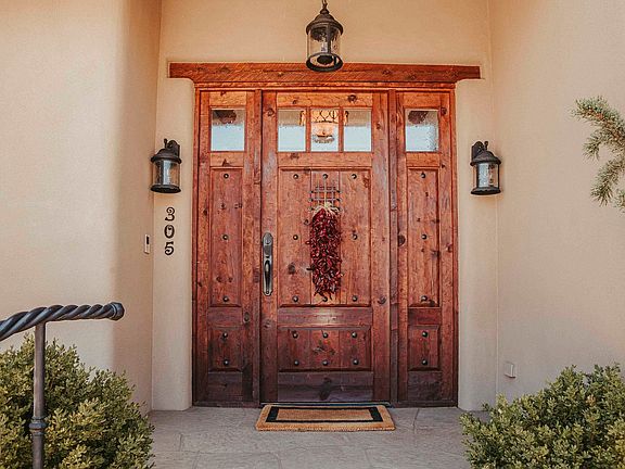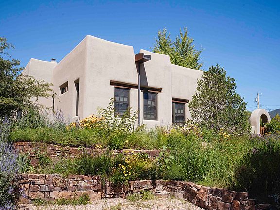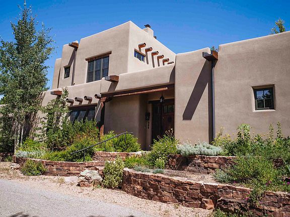 ESCAPE TO AN OASIS of tranquility in the heart of Taos, New Mexico. This exquisite 4,950 sf. 3 bedroom main house and a separate attached 2 bedroom casita, all nestled on .385 acres, is a masterpiece of design and craftsmanship. Step through the hand-crafted front door into a formal living room adorned with hand-plastered walls, 10' ceilings, custom bookcases, polished concrete floors and a southwestern fireplace. Vigas and herringbone latilla ceilings add warmth and character to this elegant space. The gourmet kitchen is a chef's dream, boasting a Jade Range, GE Monogram double-oven, Bosch Dishwasher & LG Refrigerator, custom wood cabinetry, granite countertops, a walk-in pantry, and LED under-cabinet lighting. The kitchen flows nicely to the interior courtyard or lush gardens for outdoor dining. Pantry/mud/laundry room with LG Washer/Dryer offers access to the heated two car garage. A long corridor leads to a luxurious primary suite, complete with a dressing room featuring his and her closets, a southwestern fireplace, and a spa-like bathroom with a walk-in shower and a large soaking tub. A thoughtfully designed guest suite, features built-in closets along with a spacious attached bathroom. Ascend to the second floor via a graceful staircase or convenient elevator to the beautiful great room with large elegant windows and doors, along with the continuation of latilla ceilings, built-in bookcases, and a hand-carved mantel gracing the fireplace. An additional bedroom, currently used as an office, a convenient stylish kitchenette, along with a contemporary bathroom complete the interior rooms on the upper level. Outside is a private portal w/ a raised wood-burning fireplace and comfortable built-in bancos. The portal offers ample space for entertaining family and friends as you enjoy the stunning views of Taos Mountain. Descend to the impressive wine cellar, where you'll find room for over 1,350 bottles, a sophisticated granite tasting counter, storage room, and a reassuring battery backup system. The attached casita with a separate entrance offers a delightful retreat; featuring a kitchenette, a living room with fireplace, and a sweet dining area. Two bedrooms and one bath can comfortably accommodate up to four guests.. The home is surrounded by adobe walls, tiered rock walls, mature gardens, perennial beds, and a gated vegetable gardens. There is also a separate lawn area with a private hot tub. Additionally, there is a free standing, 475 sf. storage shed, with mini split for heating and air conditioning, that can easily be converted to a cool artist studio or large workshop. Located within walking distance to the historic Taos Plaza, Kit Carson Park, and the town's vibrant art galleries, celebrated cafes and culinary scene. Adjoining lot is available for sale. Schedule your private showing today, and experience the unparalleled luxury and tranquility of this Taos sanctuary.