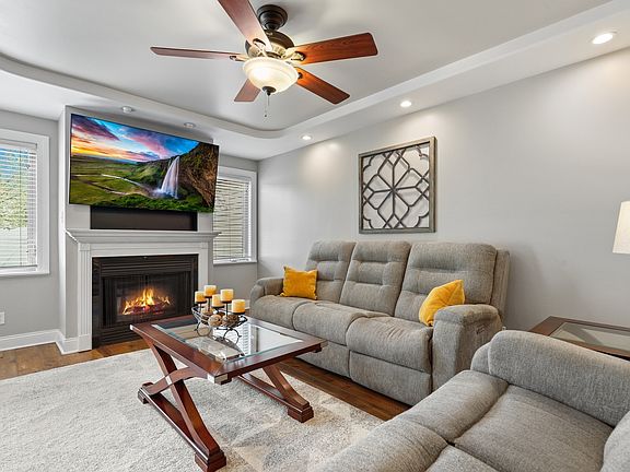 Stunning and updated 2-bedroom, 2.5-bath townhome located in the desirable Deer Trail Villas, featuring an attached 2-car garage with attic storage. This former builder's model home showcases numerous upgrades, including new flooring throughout, solid core oak doors, oversized white trim, and an oak banister railing. The beautifully designed kitchen boasts rich cabinetry, granite countertops, and stainless steel appliances, opening to a bright dining area with windows overlooking the private fenced yard. The spacious living room offers a cozy electric fireplace, trayed ceilings, LED recessed lighting, and an elegant architectural wall in the foyer. The primary suite includes a tray ceiling, walk-in closet, and a luxurious private bath with a full shower and whirlpool tub. A generously sized second bedroom and a full guest bathroom provide ample space for family or guests. Additional highlights include a laundry room with utility sink and cabinetry, pocket doors, a newer water heater, and Lake Michigan water. Conveniently located just minutes from shopping, schools, and scenic bike trails. Served by the highly rated Lake Central School District.