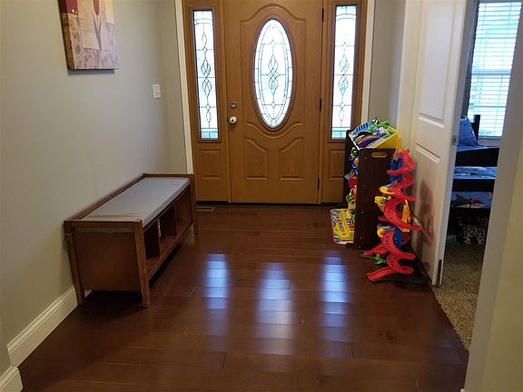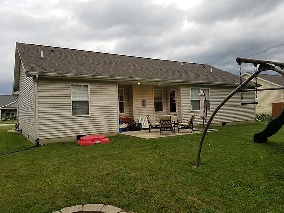 Very nice 6 year old 3 BR, 2BA ranch in a lovely neighborhood in Chatham. Master suite has walk-in shower, jetted tub and double vanity in bath and walk-in closet. Kitchen has lots of counter space and stainless appliances. Good-sized bedrooms and formal dining room is currently being used as bedroom 4; can be converted back to dining room, office or den. Lovely hardwood floors. Gas fireplace. Home is in a great location near the library and park. All kitchen appliances stay. Window coverings stay. Backyard is nice-sized with a firepit. Trampoline and playground equipment don't stay. Square footage is believed accurate but not warranted.