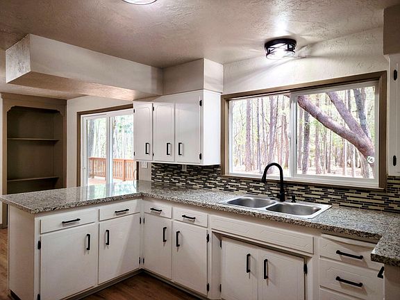Beautifully remodeled ranch style 3 bdrm, 2 bath home on level 4.23 acres, with variety of mature trees, including marketable timber. This home boasts granite countertops, all new appliances, modern bathrooms, new vinyl windows, and LVP flooring throughout. Guest bathroom has a luxurious custom tiled shower. Master bath has plenty of space with two beautiful acacia wood vanities, one of which includes gorgeous double vessel sinks. This comfortable, spacious home also has central heat/ac as well as a custom stone hearth with wood stove in the living room (current wood stove is not certified). In addition, there is a large attached two-car garage, as well as an outbuilding for additional storage. Plenty of room and accessibility for RV/boat parking. Located just a couple miles from relaxing on the beautiful Applegate River at Fish Hatchery Park. Ideal rural location to enjoy peace and quiet, yet just a short drive to city conveniences. Note: Listing agent is related to Seller.