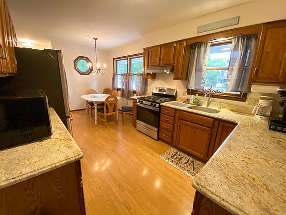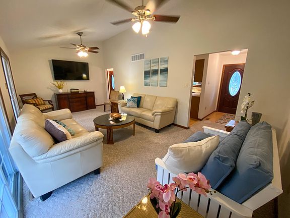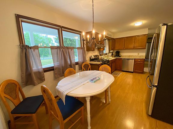 Three bedroom, two bath with attached garage. Driveway will fit up to four cars. Large back yard with storage shed.