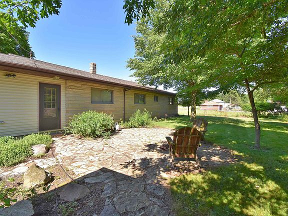 Check out this move-in ready limestone ranch home with 4 bedrooms and 2 full baths. This home is what you've been looking for! Open concept with a spacious living room, dining room, and a kitchen with custom cabinets. Appliances are included! The primary bedroom could also be utilized as a mother-in law suite and has a large walk-in closet, full bathroom, and a sliding glass door that leads to a backyard patio oasis. Do you enjoy movie nights? This home has a rec room with built-in shelves to store your movies, a LCD projector, and a large movie screen. A few bonus features include a 2 car detached garage, storage space in attic, heated floors, and a partially fenced in yard. Conveniently located near the school and walking trail. It's ready for you to move in and enjoy!