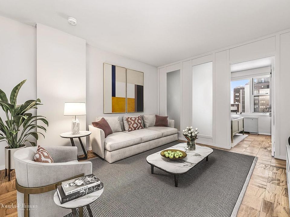Welcome to this large, sunny, and renovated low maintenance ($792.17) studio co-op that is currently configured as a junior one bedroom, which creates the feeling of a much larger apartment. You enter the apartment with tons of closet space in your foyer, to your right there is a beautifully renovated kitchen with stainless steel appliances and granite counters, and to your left around the large foyer closet there is a lovely dining nook (or sleeping alcove). The large living room allows for office, dining and living space, a convenient dressing area with more closet space and a stylish bathroom with white subway tile. The apartment also features hardwood floors, unobstructed Eastern sights with tons of sunlight, and peace and quiet! New York Towers is a full service co-op boasting a 24-hour doorman, concierge, a resident superintendent, laundry room, furnished roof deck, bike room, storage, and on-site garage. Co-purchasing, gifting, pier-e-terres, and pets are all permitted. Additionally, there are tons of restaurants, shops, grocery (Trader Joes, Morton Williams and Fairway), transportation and parks in the area. A perfect place to call home!