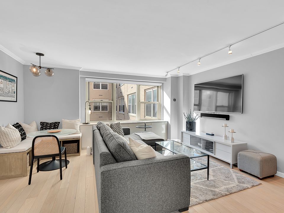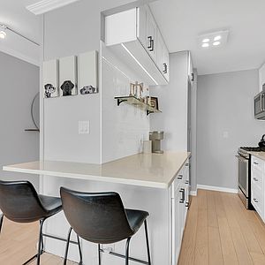 Discover Your Perfect One-Bedroom Apartment Fully Renovated and Ready to Call Home! This beautifully updated one-bedroom apartment is a true gem, featuring Southern and Eastern exposures that flood the space with natural light all day long. The smart layout offers a full size washer and dryer plus outfitted closets providing more than enough room for all your storage needs. The chef's kitchen is a standout, complete with a dishwasher and sleek countertop seating ideal for both cooking and entertaining. The spacious living room offers flexibility for a dining area or home office setup, while the bedroom is a true showstopper. This corner unit boasts three windows with stunning open-sky views, creating a serene retreat. This iconic cream-colored brick building on the east side of Second Avenue at 24th Street features modern design with angled facades. The main entrance is on a quiet cul-de-sac on 24th Street. Inside, the spacious lobby offers terrazzo floors and mid-century seating for a peaceful retreat. Convenient amenities include a private onsite garage, elevator access, a doorman, concierge, porters, resident manager, and four elevators. Additional features are a large laundry room, storage, and bike room (waitlist may apply). Located at the crossroads of Kips Bay, Nomad, and Gramercy, you're steps from Union Square, Whole Foods, Trader Joe's, and top dining and shopping in Flatiron. Enjoy easy access to nearby parks for a balanced lifestyle. Don't miss this chance to live in one of Manhattan's most desirable locationsschedule your viewing today!