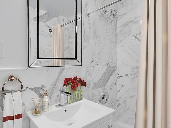 Video Tour Available. This newly renovated one-bedroom home offers the perfect combination of warmth and elegance with its modern interior and abundance of south-facing sunlight. Upon entering this loft-like home, you are greeted by a gracious foyer with custom built-in closets that leads to the open living and dining room. Here you will find new hardwood floors, white brick detailing with plenty of space for entertaining, and a separate dining area. The kitchen features stainless steel appliances, a dishwasher, granite countertops, and tiled backsplash. Next to the spacious living area lies the bedroom and bathroom. The hallway leading to the bathroom is outfitted with built-in closets and additional storage. The bathroom has been completely gut-renovated and is wrapped in marble. Residents at 305 East 24th Street enjoy a host of amenities which include a 24/7 doorman, Resident Manager, on-site building management room, concierge, newly renovated laundry room, package system, and on-site parking with direct access from the building's lobby.