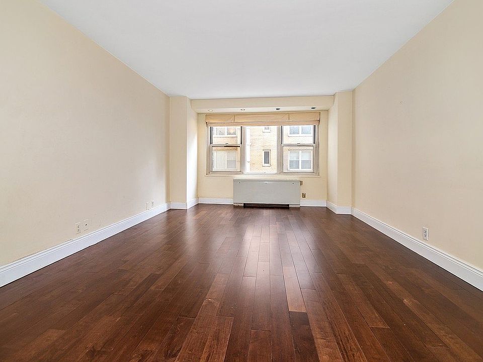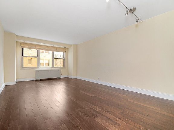 Enter through the gracious foyer with large closet to the left. The main living / dining space includes room for a separate dining area and windows with views north and east. There are hardwood floors throughout, as well as two walk in closets, a linen closet, a coat closet and custom window treatments. There is no street traffic in sight which gives this apartment a Zen-like quiet.