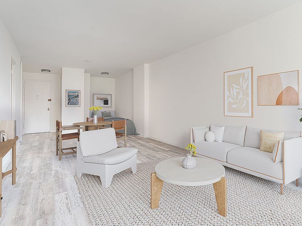 This apartment has undergone thoughtful upgrades and a complete renovation, creating a spacious alcove studio with a separate dressing and closet area. The apartment is quiet and features southeast-facing windows that allow for ample natural light throughout the day.
