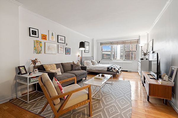 Huge Midtown East Studioin great doorman and elevator coop building. This large East facing bright studio home has a nice sized living area, dining area, and sleeping area, all comfortably combined. There is nice closet space as well. The bathroom and kitchen are both in very good condition. There are nice light oak wood floors throughout the apartment. A large AC Unit keeps the apartment extremely comfortable. New York Towers is a full-service building with full-time doorman, concierge, and valet located on a cul-de-sac street. Recently renovated lobby, on-site garage with direct access into the building, laundry room, bike room, and live-in super. Tons of 23rd Street transportation options within a very short walk. New York Towers is centrally located near Madison Square Park, Union Square, Gramercy Park, NoMad, East Village and Flatiron and all transportation, including the 6, N/R/W and L trains and express bus service. Conveniently located near NYU Dental, Medical, Engineering & Nursing Schools. Located near the new Rosemary's East, Mexico Lindo, Hane Sushi, Posto Pizza, Patrizia's, Ess-a-Bagel and more! No Flex Walls allowed. No Pets Allowed. There are coop application and move in related fees of approximately $700.