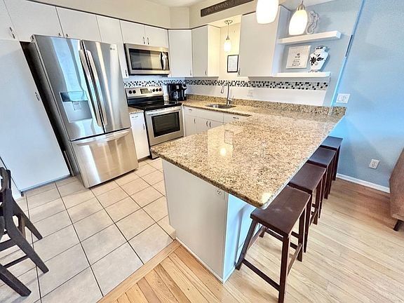 This updated top floor condo unit is just a block to the beach and amusement pier. Great rental potential or keep for yourself! Unit has shared garage and outdoor personal storage space. Present owner has updated their outdoor storage space with a private rinse area to hose off from a day at the beach. Dedicated parking that fits two cars. All new stainless-steel appliances 2021, new water heater 2019, washer and dryer new (3 months), updated fans and light fixtures and new front screen door. Condo fees include water, sewer, master flood, condo outside maintenance and landscaping.