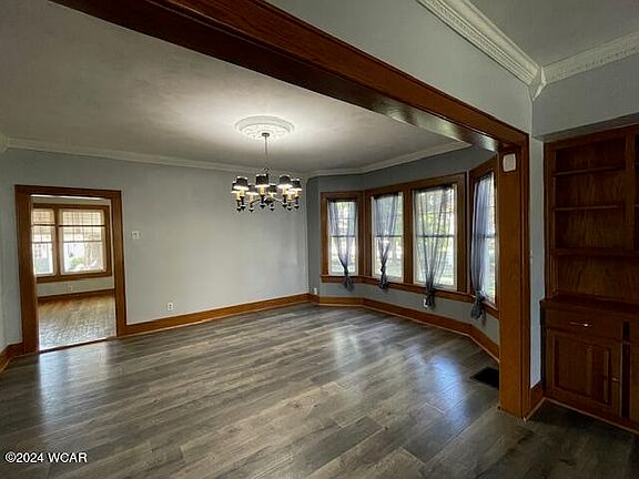 A classic beauty, picturesque and charming, this historic home (one of the cherished cornerstones of the community) is on a .5-acre corner lot in Wapakoneta. The timeless floor plan has great architectural features adorned with beautiful, original wood trim & doors. A generous and gracious, large living room with fireplace & built in shelving, dining room, 3 large bedrooms, and a flex room (all newly painted) offers lots of opportunity for easy changes to accommodate modern lifestyles. 26x56 workshop (separate electric & gas) attached to 2-car detached garage. Nice clean basement offers plenty of added storage. Lots of updates: (roof-2017, main water line-2019, furnace/ac-2019, floors 2020, kitchen 2020, fireplace insert 2019, & dog fence.