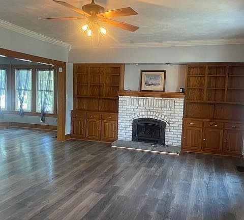 - Description: Fireplace; built in shelving