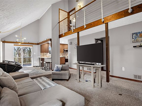 Looking for that ski-lodge feel? Looking for that non-cookie cutter home? This home is for that Buyer that wants to be in the country on 1 acre but only minutes away from the shopping, restaurants and I-70! This unique three bedroom home has a first floor master and ensuite with 2-way closet. The sunken living room is highlighted by the newer industrial/Rustic railing leading to upstairs and pretty sconces. Open concept living space includes the dining area and newer kitchen. The dining area has sliders leading to the wrap-around deck that wraps around most of the house! The newer kitchen has pretty Quartz counters, newer appliances, backsplash, push-in stove, peninsula w bar stools, recessed lighting, & luxury vinyl flooring. All new triple pane windows in home, except garage, in 2019 and roof. Lower level is carpeted and has built-in shelves to hold all your books or whatever you want. Jack-Jill bathroom in upper level. Full bathroom in lower level. Tankless water heater.