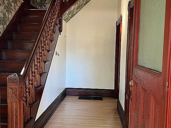 This beautiful home on a half acre lot has 2 large bedrooms on the second floor, potentially a 3rd bedroom on the main level. The master bedroom has a large walk in closet with a sunroom off of it. 1 full bathroom is on the second floor with a second bathroom on the main level, including a stand up shower and laundry. The washer and dryer will stay with the house, as well as the refrigerator. The original hardwood floors have been newly refinished. A second sunroom is off of the dining room. 4 stall, detached garage. All woodwork is original, including multiple pocket doors on the main level. There is an unfinished basement also. Central air and a 3 year old furnace.