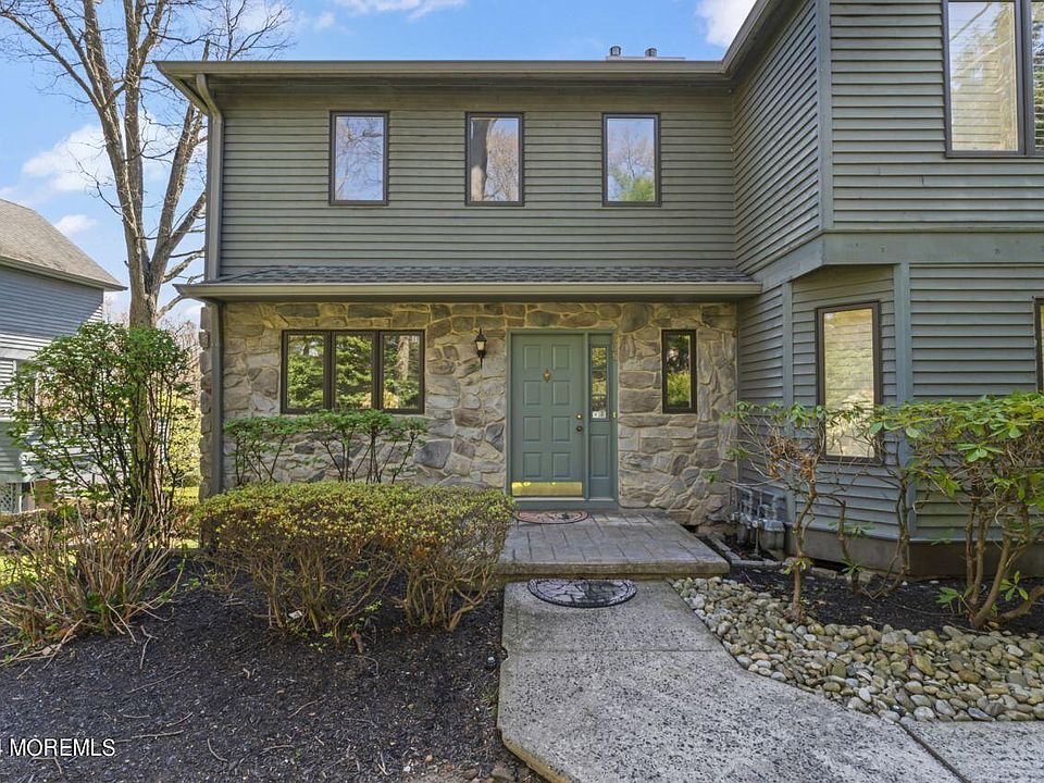 Sought after Scenic Ridge! This spacious, freshly painted, 2 bedroom, 2.5 bath end unit boasts a sunlit open floor planned interior that is ideal for easy living. Amenities include gas fireplace, hardwood floors, eat in kitchen with stainless steel appliances, slider from living room to covered balcony & open deck, both bedrooms with en-suite baths, walk-in closets in primary bedroom, attached garage, more. The best of all worlds - private setting in the hills of Atlantic Highlands, yet mere minutes to the quaint downtown restaurants, ferry into NYC, and sandy beaches along the Atlantic Ocean.