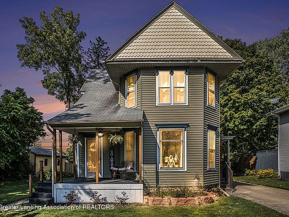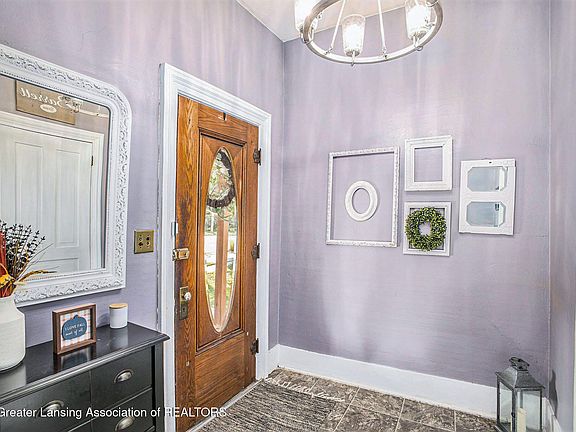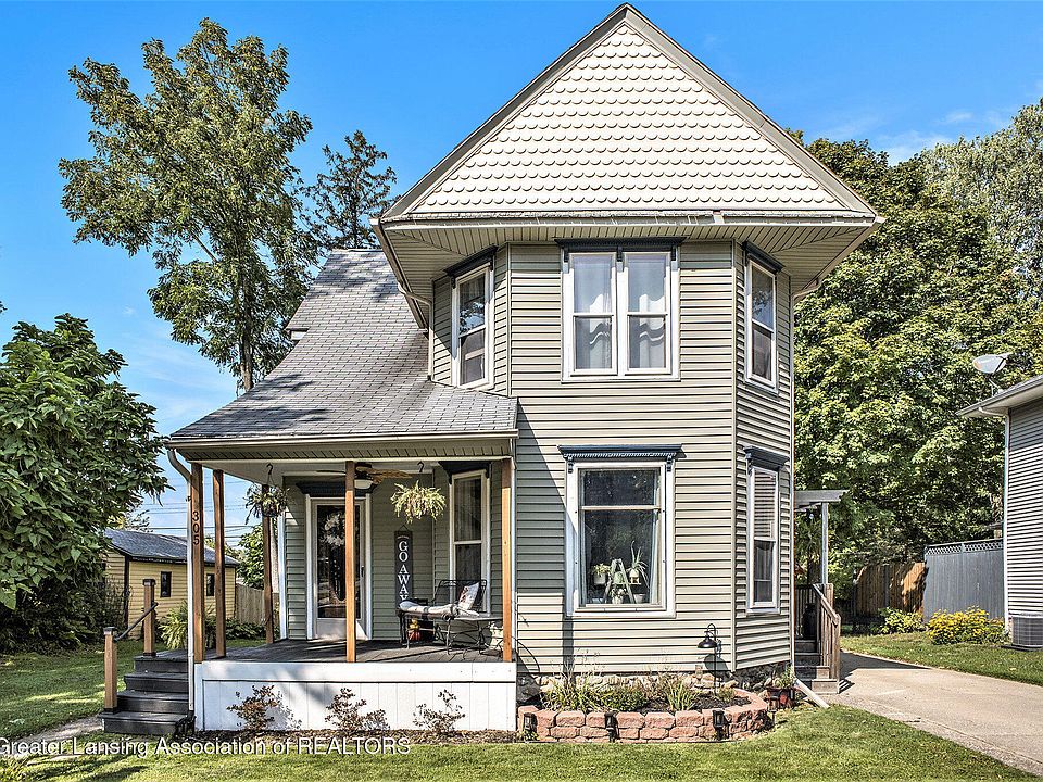 Nestled in the heart of Williamston, this beautifully updated Victorian offers 3 bedrooms and 2 bathrooms, blending timeless character with modern farmhouse flair. A welcoming front porch invites you into a quaint entryway, opening to a stunning living room with soaring ceilings and abundant natural light from the south-facing windows. The main level features a formal dining room and an updated kitchen with newer appliances, perfect for entertaining. A cozy family room with a wood-burning fireplace, mudroom off the side entry, laundry area, updated bath, and a convenient first-floor bedroom complete the main level.