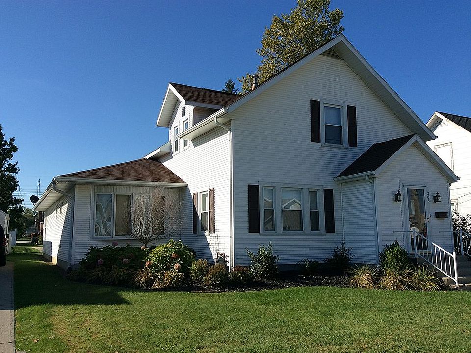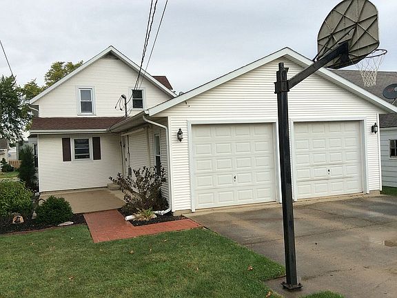 SPACIOUS! This two story frame home features front and rear entry halls with hardwood floor into the dining area, three bedrooms, two full baths with first floor bath having a Jacuzzi tub, living room, open kitchen-dining with bar, family room, first floor laundry room, large open patio with retractable awning, basement and an attached two car garage. The home is heated by a gas forced air furnace and cooled by central air conditioning. The home is built on a part basement / part crawl space foundation. The basement, accessed from the outside, consists of the furnace, gas water heater and plenty of storage. An alley runs along the backside of the property which provides access to the garage and the large concrete driveway.