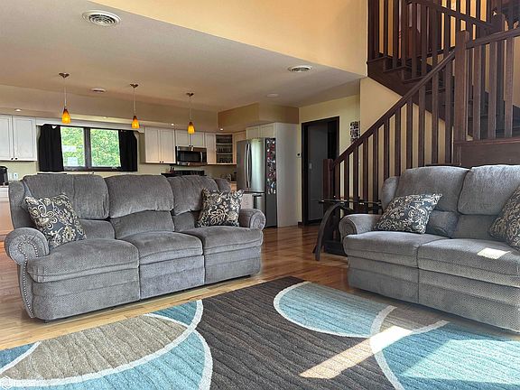 Wow!!! What a view from this beautiful cabin home on the Mississippi River. Granite countertops, open concept, mainfloor laundry and 1/2 guest bath. Mainfloor bedroom with walkin shower. Upstairs 2 larger bedrooms and a very large bonus room with a 2nd full bathroom. Surround wood deck for maximizing view. Raised cabin above required flood plain level. Security system. Hotwater heat pump system for winter pipe prevention. Can be used year round. Plenty of parking on the cement pad below. Poured ramp just waiting for a dock to be hooked up. Call your favorite agent and check it out! Security system included.