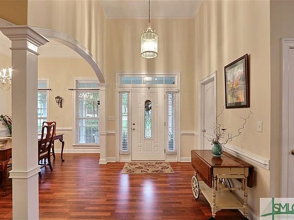 Story book full brick home, located in the serene community of Ridgecrest in South Effingham! As you walk up to this stunning, custom home you are greeted by a beautiful wrap-around porch, surrounded by gorgeous mature landscaping on one of the largest lots in the community. Inside features soaring high ceilings & an open floor plan throughout the living areas, formal dining room, family room w beautiful brick fireplace & raised hearth, bright & open kitchen w breakfast room. Split bedroom floor plan w central vac system throughout. Master bedroom suite features gorgeous octagonal trey ceiling and separate sitting room. Master bath features double sinks with cultured marble tops, high ceilings, separate whirlpool garden tub & shower with marble surround. Walk-in closet with high ceilings that offer ample storage opportunities! Upstairs features a large bonus room that can double as a 4TH bedroom NO HOA FEES! Privacy fenced back yard with sprinkler system and well for irrigation.