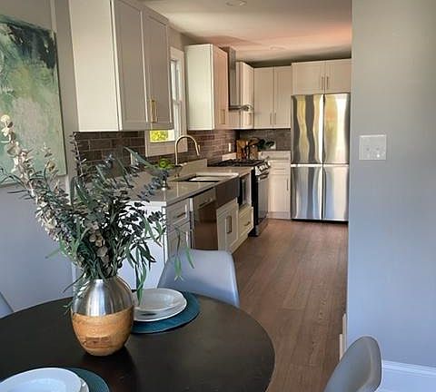 $650,000. Zestimate. $650,350. RPR estimate. This newly renovated home is just two blocks from Takoma Park’s historic commercial district with access to shops, restaurants, art galleries, music venues and more. Takoma Park is famous for its many festivals and blossoming arts scene. Enjoy all the new of this charming historic home combined with all the history and all the convenience of this great location. Your morning coffee and Danish is just a 5 minute walk and bring home a loaf of freshly baked bread for dinner. Meet friends for drinks and outdoor dining then enjoy some culture at nearby venues. This brand new upscale kitchen is a cook’s delight with new cabinets, quartz countertops, upgraded stainless steel appliances including beverage chiller, a stainless steel farmhouse sink, gas stove and unique four door refrigerator/freezer. When you exit the kitchen to the brand new deck you will feel like you are living in a tree house. The extra large lot is an oasis of privacy just waiting for your exciting outdoor living ideas. The main level includes a generous sized bedroom, office or den and a powder room. The basement is completely finished with a fourth bedroom including a separate exterior entrance, recreation room, full bathroom, separate laundry room and walk out exit to the backyard. The second floor includes two bedrooms and a full bathroom. All bathrooms include tiled floors and tub/shower surrounds with designer mirrors and lighting. A brand new roof and heat pump assure many years of comfort and maintenance free living. Just waiting for new owners to love it – call to see it now!