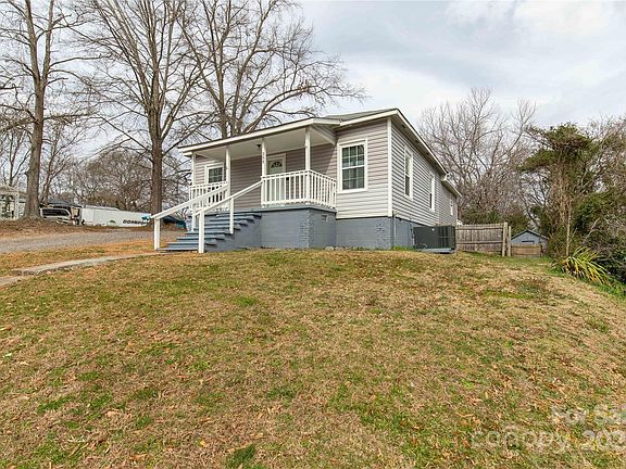 Remodeled 3 bedroom, 2 bathroom with Living Room and additional Den/Office space in Clover. New- laminate floors throughout, fresh paint, 95% of all windows replaced, light fixtures, new bath vanities, new garage doors & openers, new HVAC system, and insulation added to crawl space. Kitchen cabinets have been painted. Spacious kitchen w/eat-in area, lots of cabinets & counterspace, pantry & all appliances remain plus the washer & dryer. The washer & dryer is located in a large closet just off the kitchen. Split bedroom plan w/2 bedrooms on the front of the home and a den/office w/access to side deck & primary bedroom in the rear of the home. The primary bedroom has access to the rear deck overlooking the backyard. The whirlpool tub/shower has tile look vinyl surround. Outside there is a covered front porch & a two car wired detached garage & storage building. Lots of concrete for parking behind the home. Great location to schools, churches, parks, shopping & restaurants.