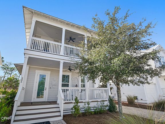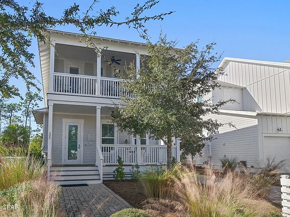 Positioned within the highly sought after NatureWalk at Seagrove community, this beautifully maintained two-story Florida cottage stands out as a truly exceptional coastal retreat. Designed for elevated outdoor living, the home's private backyard oasis showcases a temperature-controlled saltwater pool, commercial grade shade umbrellas, and a cozy fire pit, creating an idyllic setting for relaxation or entertaining in effortless style. The area adjacent to the pool provides a versatile space ideal for games and recreation. Projected to generate $133K annually, this residence offers a compelling opportunity for discerning buyers seeking a luxurious second home or a high performing vacation rental. Peacefully situated with serene pond views and backing directly onto the Point Washington State Forest, the property enjoys unrivaled privacy and immediate access to more 15,000 acres of preserved nature trails ideal for hiking, biking, and exploring. Spanning 2,556 square feet, the popular Sea Glass floor plan features rich wood flooring throughout and a welcoming fireplace in the main living area, fostering a warm yet sophisticated ambiance. The professionally curated interiors embody the essence of the Emerald Coast, blending refined coastal details across four bedrooms, four bathrooms, and expansive open concept living spaces. Every room has been intentionally designed to balance everyday comfort with timeless elegance. At the heart of the home, the chef's kitchen impresses with stainless steel appliances, including custom installed 33-inch professional refrigerator and freezer units, a gas cooktop, white shaker cabinetry, sleek granite countertops, and a grand 10-foot island perfect for hosting family and friends. The primary suite offers a tranquil private escape complete with its own covered porch, ideal for a quiet morning coffee or peaceful evening unwind. Its spa inspired en-suite bath features a soaking tub, separate walk-in shower, and elevated finishes that evoke relaxation and rejuvenation. The garage provides ample space for vehicles, a golf cart, and all your beachside gear.