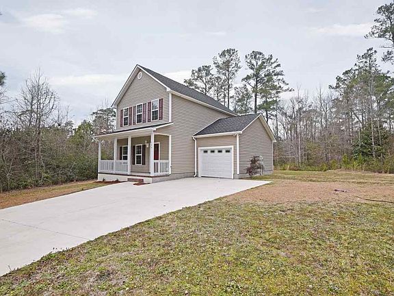 The best of both worlds: privacy within a neighborhood! Blink and you might miss this beautiful two-story home hidden behind the trees on a cul-de-sac. Perfect if you like living in a community, but also value a little seclusion. Enjoy wood-look tile throughout the downstairs, along with a half-bath and laundry room. The kitchen features stainless appliances, bar seating as well as a combo dining area. Upstairs you'll find all three bedrooms including the master suite with walk-in closet. Enjoy your morning coffee on the covered front porch. Exterior features also include a wood back deck, clothesline, and a NEMA 14-50 outlet to charge your electric car or connect your RV! This home comes complete with Vivint security system equipment, refrigerator, and washer and dryer. Located close to MCAS New River, and only a short drive to either the shopping in Jacksonville or the beaches at Topsail. Don't wait, schedule a showing today!