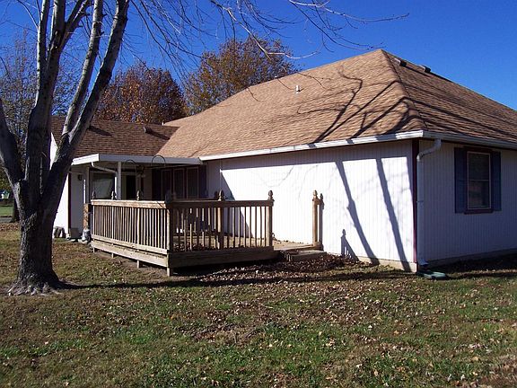 3 bedroom, 2 bath home with open floor plan. Cathedral ceiling in the living room makes it feel more spacious. The fireplace adds coziness. Wide doorway gives an openness into the kitchen and dining area. Kitchen has a bar for eating casual meals or just keeping the cook company. The atrium door from the dining area to the covered patio and deck has great flow for outside entertaining. The bedrooms are all a nice size and the master bedroom is very spacious. The third bedroom has a great walk-in closet. The laundry is completly closed off in a separate room. There is a large linen closet at the end of the hall and another large storage closet in the master bath. The master bath has a double vanity and sinks. Over 17,000 square feet in the yard. Attached 2 car garage with a nice workbench. A storage shed.