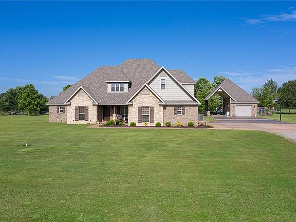 SW OF Ft SMITH ON THE OK SIDE OF STATELINE RD. This striking 4 BR 3.5 BA home sits on 2.83 park like acres. (Detached WS & RV parking.) Enter this polished family home to find an office (with a closet) & separate dining. The South Wing offers a BR, safe rm & full BA. The kitchen is perfect for entertaining & you will find the walk in pantry very useful. N wing features a master suite as well as a laundry room w. 1/2 bath. 2nd floor 2 BR 1BA & a lg bonus rm. (call for extra list of amenities)